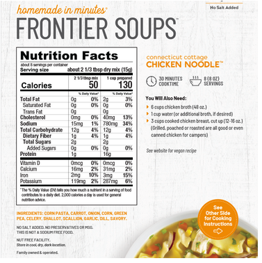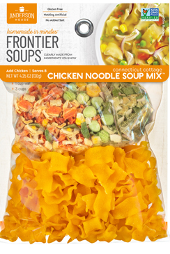 Connecticut Cottage Chicken Noodle Soup is a home-style medley of colorful peas, carrots and corn that are delicately seasoned with dill. Combined with gluten free corn pasta, this delightful 30 minute soup is a family favorite.
