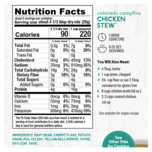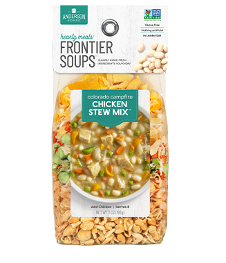 Colorado Campfire Chicken Stew is a blend of peas, carrots, potatoes and white beans with just the right seasoning for a soup as thick and rich as the inside of a chicken pot pie. Add chicken and you’ll see why this hearty gluten free stew is a top seller.